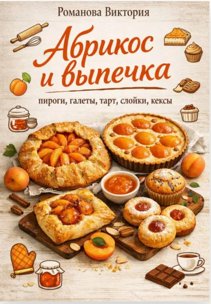 «Абрикос и выпечка: пироги, галеты, тарт, слойки, кексы» — это книга для тех, кто любит домашнюю выпечку с ярким фруктовым вкусом и хочет, чтобы абрикосы получались не «кислой кашей», а красивой, ароматной начинкой.